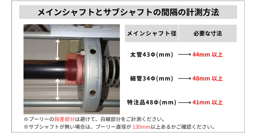 ・メインシャフトとサブシャフトの間隔が十分にある。
